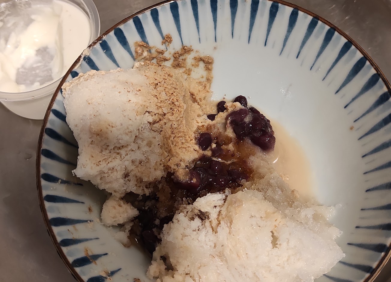 湯圓、紅豆、粉粿,及灑滿整碗的麵茶粉