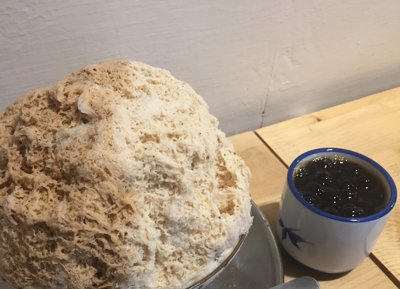 走進店內覺得聞到一種小時候外婆家的味道,空間上偏擁擠,但完全不影響冰品的美味,看起來一球很美,需要等待的珍珠Q彈微蜜,刨冰的醬很有茶味,與奶調和得剛好,裡面還藏了奶酪,真的好吃。
