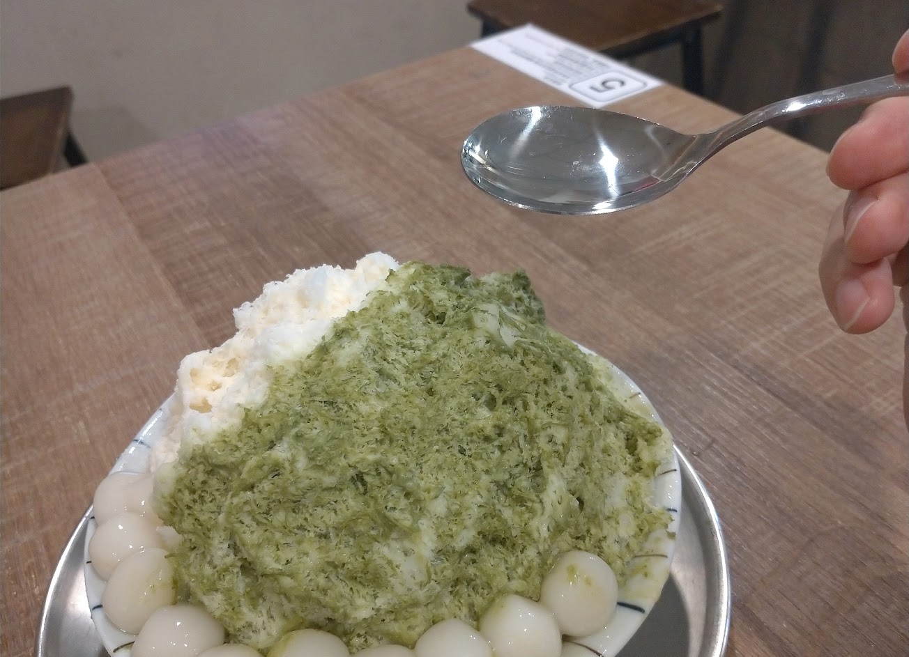 宇治金時冰很好吃,冰下面有滿滿一層紅豆,跟冰很搭,味道非常棒~旁邊的湯圓QQ的讓整體口感很多樣,非常推薦!