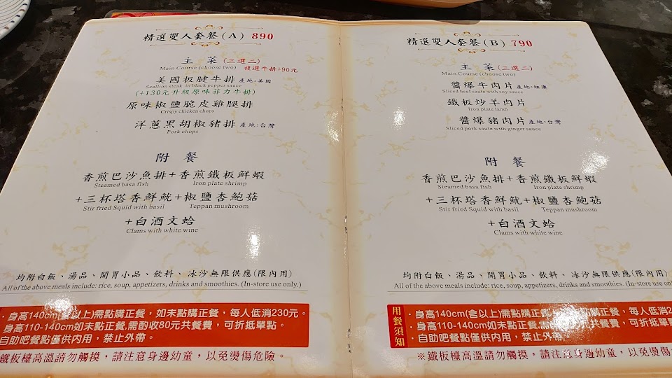 胃口小,鐵板料理份量會覺得剛剛好 服務 內用 餐點類型 晚餐 平均每人消費金額 $400-600