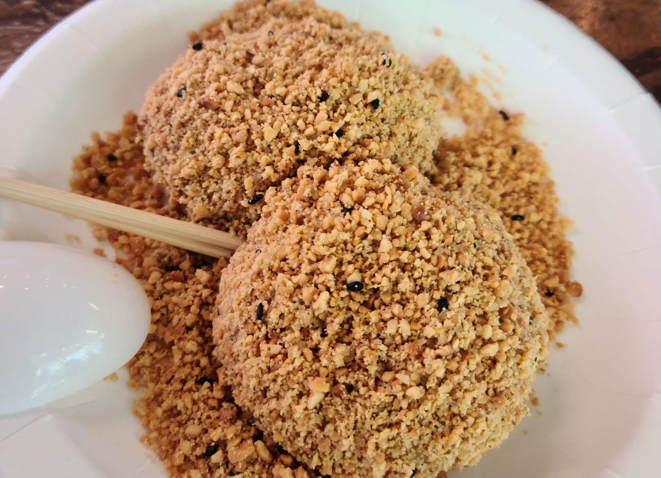 燒麻糬吃起來像湯圓皮外層裹了打碎的花生