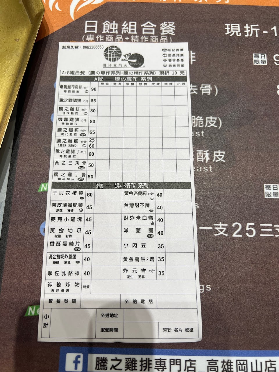 2024最新在地推薦餐廳的菜單_騰之雞排_岡山店(炸雞/小物)的菜單、圖片