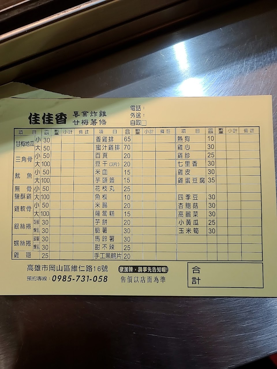 2024最新在地推薦餐廳的菜單_佳佳香專業炸雞-岡山店的菜單、圖片