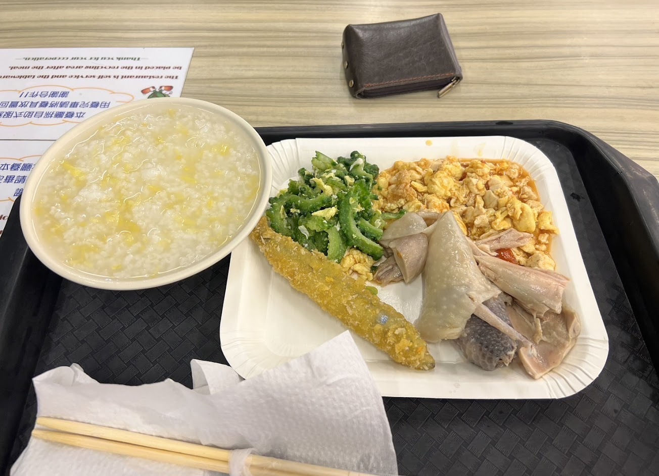耖,夾五樣菜,有三樣是那種一碗10元的特價菜(就是盤中剩下一點點用碗裝起來的那種),一匙番茄炒蛋、一匙芹菜炒豆皮,還要拗說我夾太大匙,明明就一點點而已,還要100元,要不是這個時間點沒有什麼店家有開,又不想吃超商,根本不會想要吃這種地方的東西,96換了招牌還是一樣貴