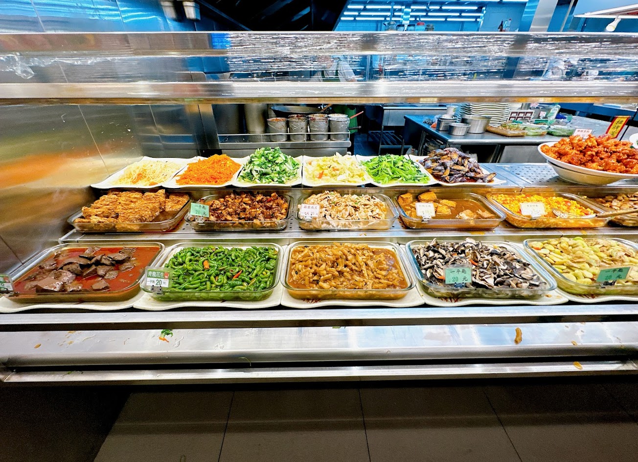 菜色琳瑯滿目,標價清楚,可自在選擇喜歡的料理,環境寬敞明亮,空調舒適,還有白飯、飲料、熱湯可自由取用,是令人愉快的用餐體驗
