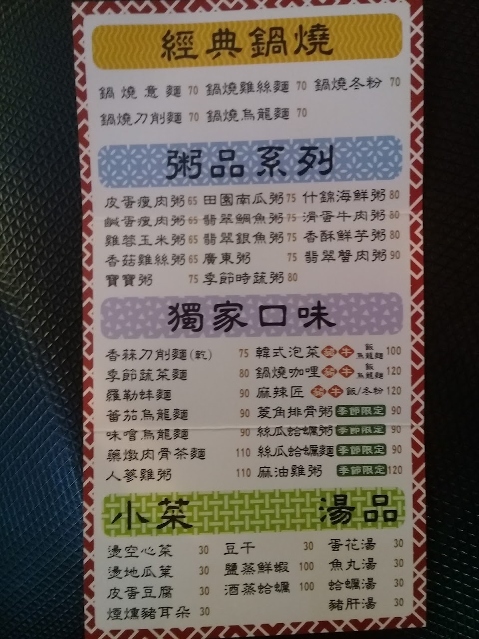粥麵種類多,也可客製化,用餐空間與外面廚房隔開也算舒適~~ 餐點:5 服務:5 氣氛:5