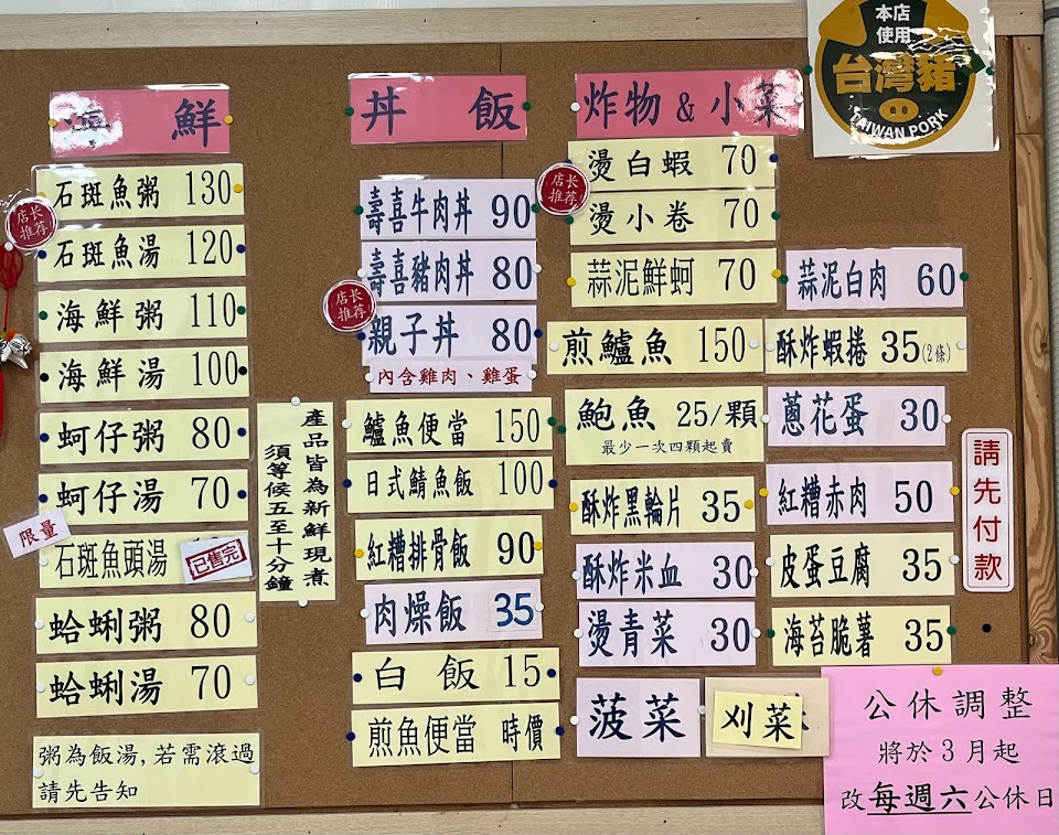 平價的小館,海鮮蠻新鮮的,蚵仔湯好喝,丼飯類是偏台式醬油調味,但口味還是不錯,酥炸黑輪片很推,一點都不油。