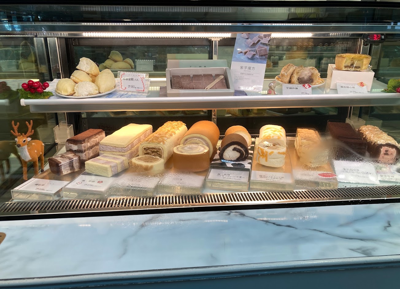 選擇很多,布丁滑嫩甜度剛好蛋的香氣很濃郁,芋頭蛋糕是招牌