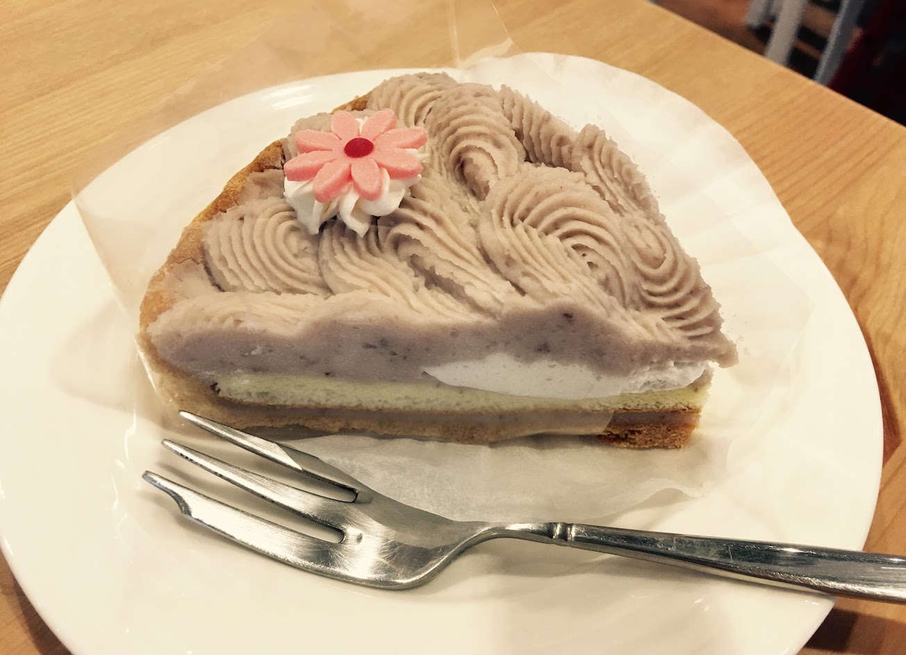 大廳挑高明亮,看蛋糕櫃時,小姐會一直問要點餐了沒?芋花園有一層塔皮再一層芋泥再一層戚風蛋糕,靠近尖端部分再夾一層鮮奶油,上鋪芋泥擠花,很用心。水果茶主要是百香果的味道,偏澀。