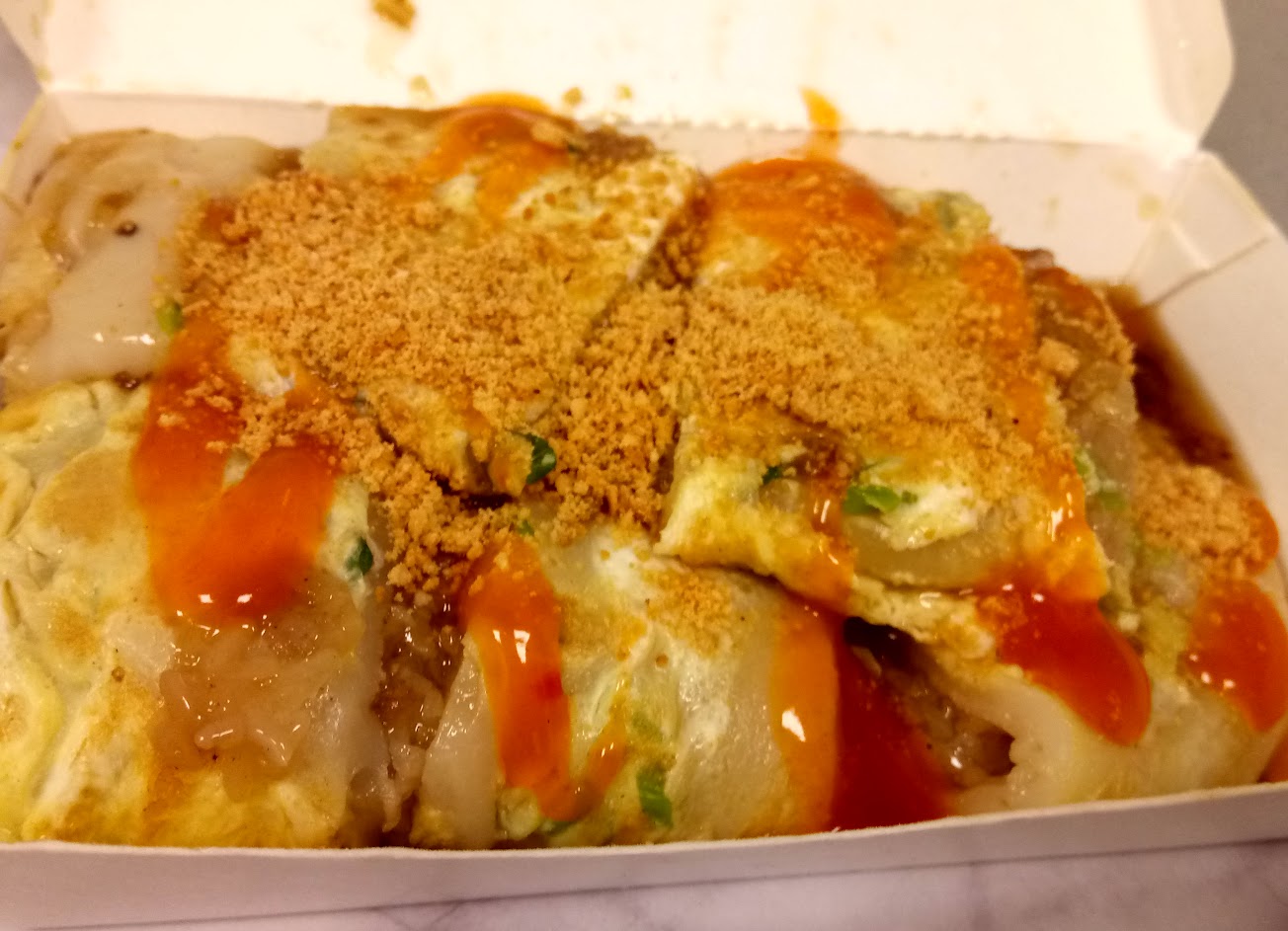 偶然間來到這裡吃早餐,許多特殊口味的蛋餅看得我眼花繚亂,最後選了招牌的肉粽蛋餅,九層塔、花生粉的搭配別有一番風味,焦脆的餅皮配上軟糯的內餡的口感給人新奇的體驗,如果有經過順路來品嚐應該會覺得開心。