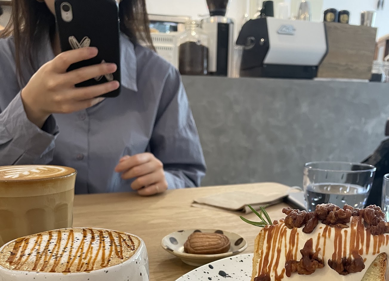 戚風蛋糕好吃 黑鹽拿鐵好喝 可愛的小店