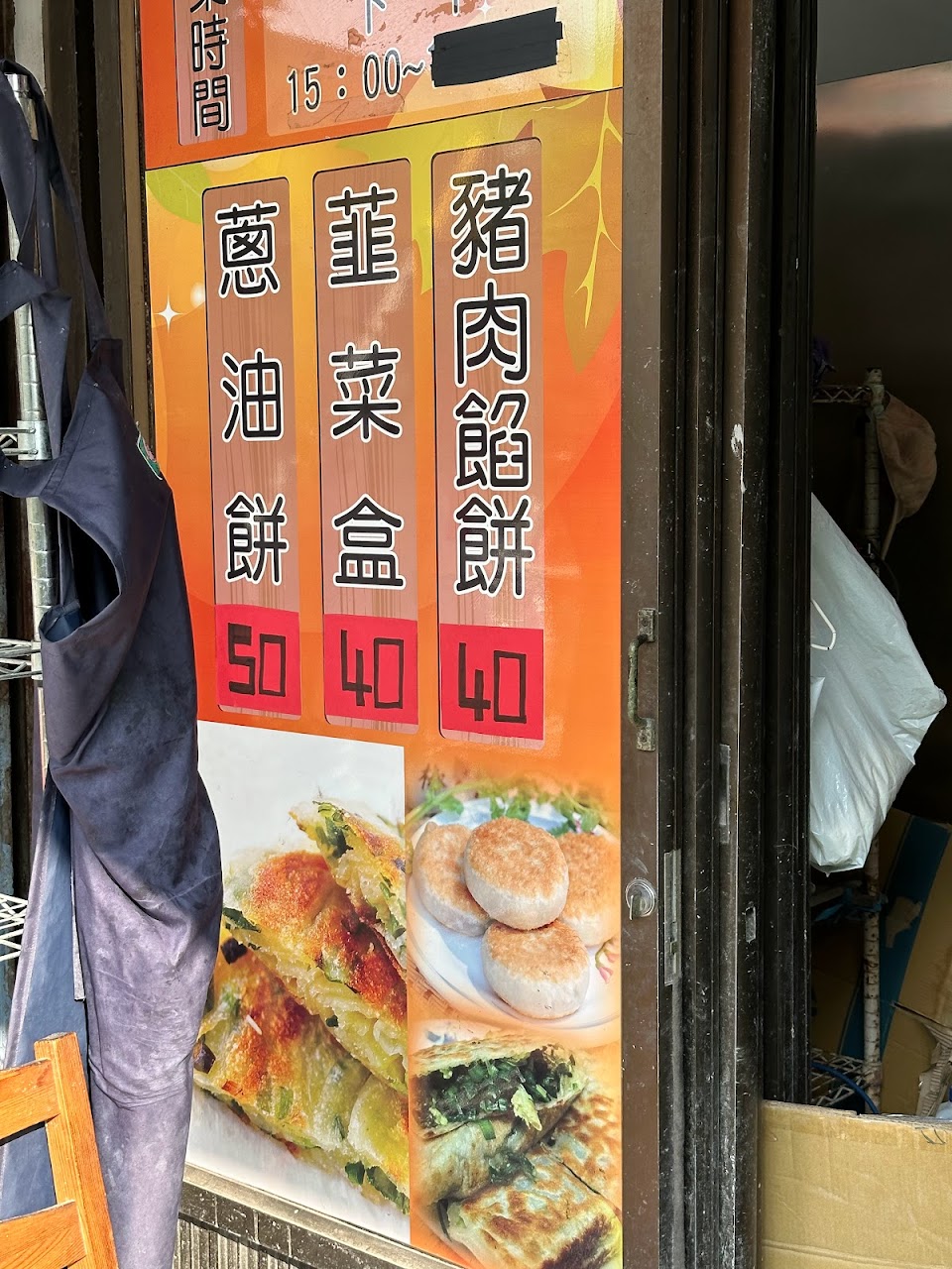 非常好吃,餡餅(很多汁),蔥油餅(很酥脆),韭菜盒子(有的人喜歡,有的人不喜歡),生意好,常很早賣完,營業時間很短,要注意ㄧ下!