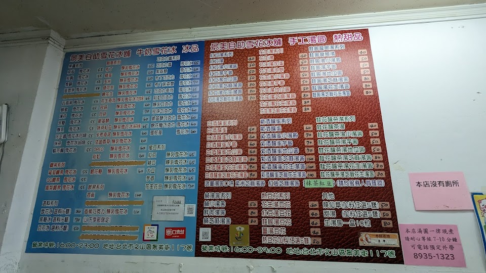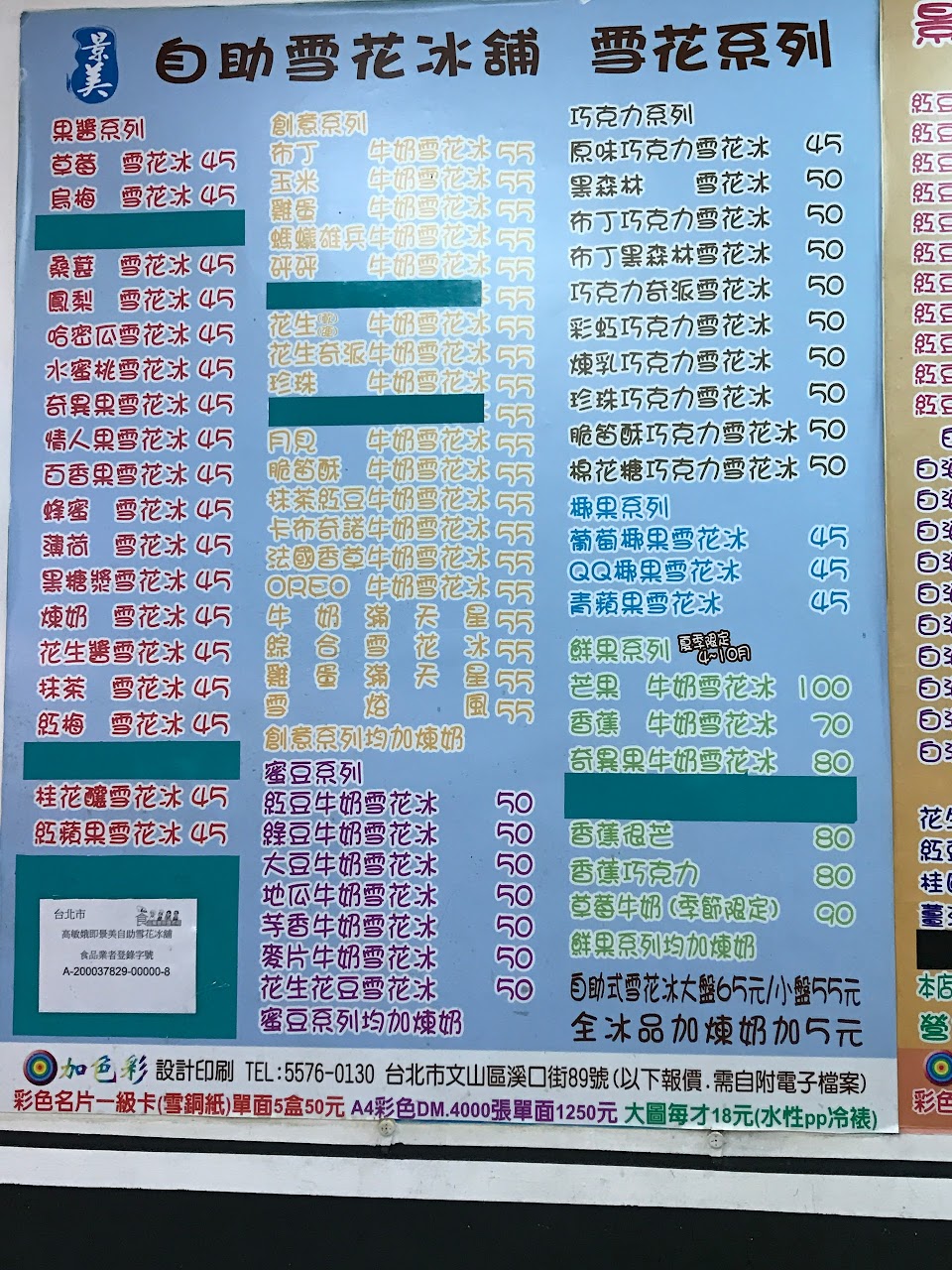 2024最新在地推薦餐廳的菜單_景美自助雪花冰舖的菜單、圖片