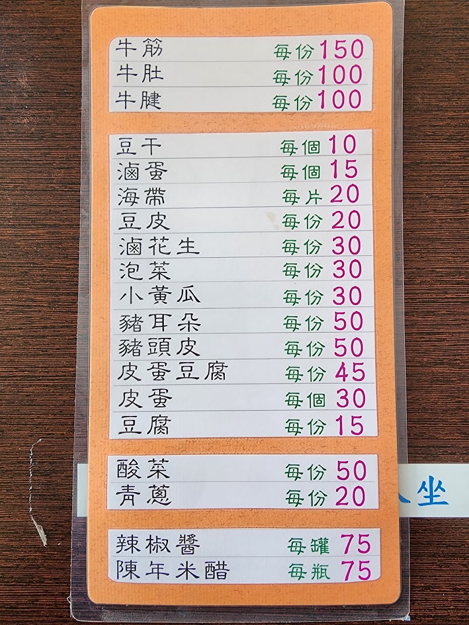 每次回台灣必吃牛肉麵,好吃,乾淨,滷味新鮮沒有過多調味,吃辣的一定要加他們自己做的辣椒醬。