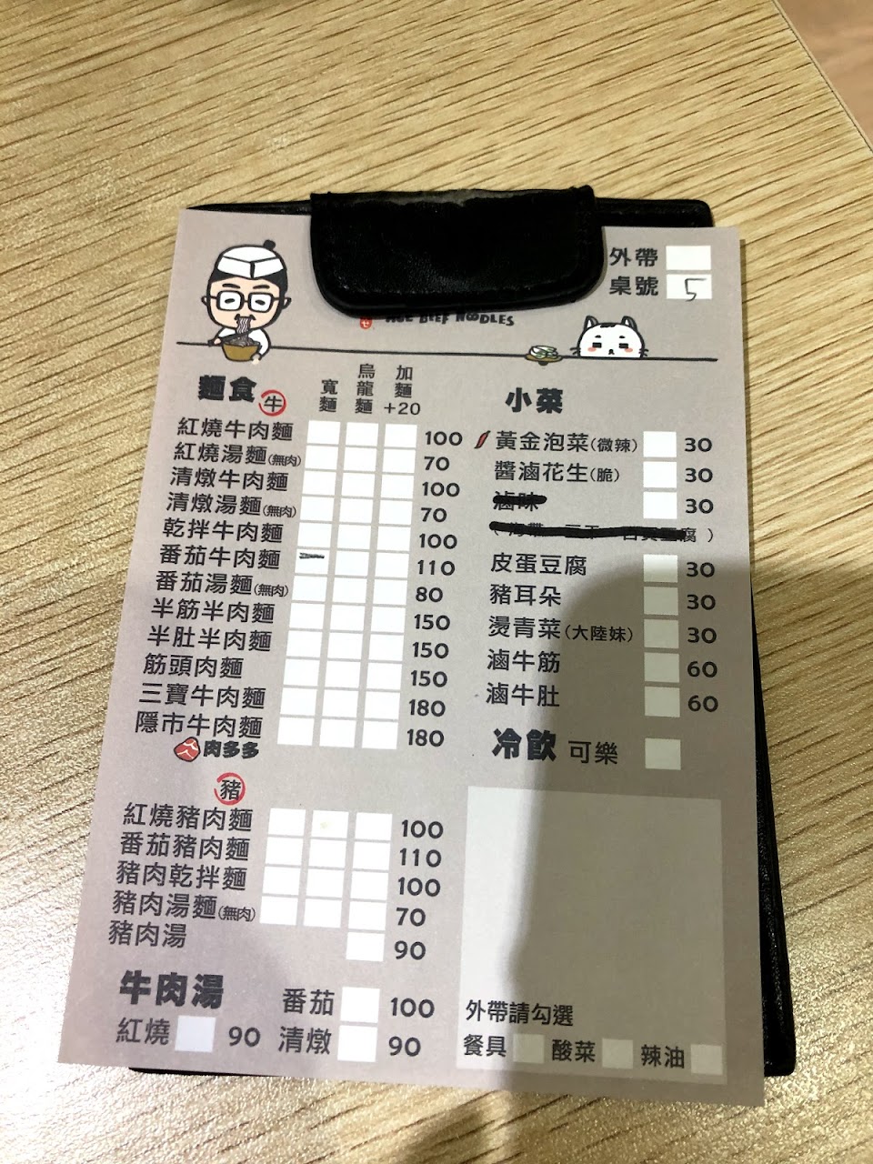 今天到達這裡將近一點半,餐廳2點打烊,所以選擇外帶。 有附上酸菜說是會辣以及一包小小的辣油說是特辣( 看到有豆豉炒干貝小蝦米之類的,非常香!但辣度很一般),也有本人可能剛從泰國回來,所以覺得一點都不辣…?? 麵條有寬麵吃拉麵兩種,問了老闆娘推薦寬麵的彈性更q所以這次選擇寬麵, 果然q度還算尚可 有機會試試拉面才比較兩者不同~ 牛肉是採取 牛腱燉的很軟 厚度每片都有1公分以上, 一碗牛肉麵賣你100塊裡面有5塊肉我覺得很有誠意。 店內很多關於琉球的介紹不知道跟琉球有什麼樣的關係,下次去再細問 。 座位不多但非常的乾淨整潔可能新店也有關係。