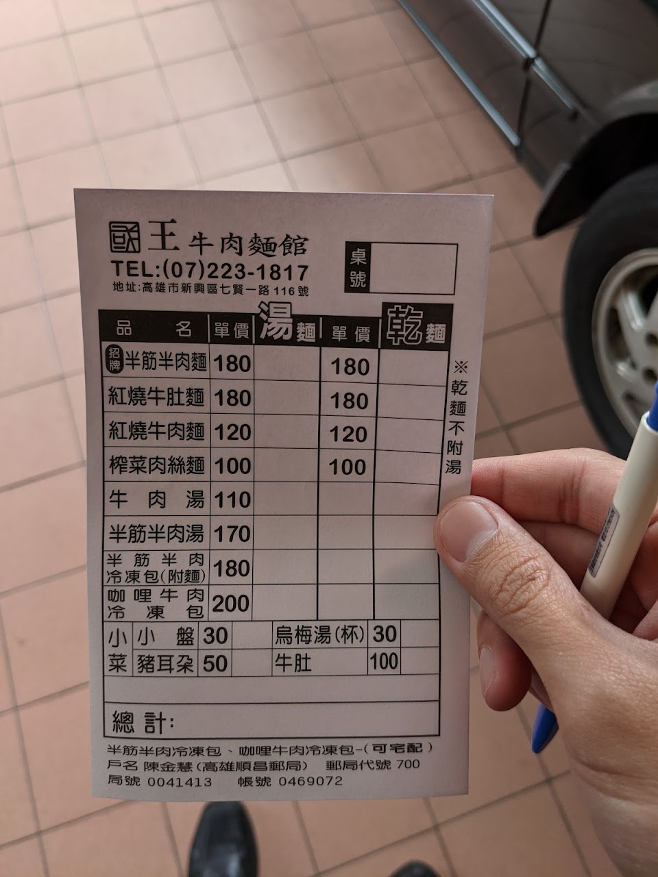 只有賣紅燒牛肉麵、牛肚麵、半筋半肉麵,有湯的和乾的,數量有限賣完就沒了 …