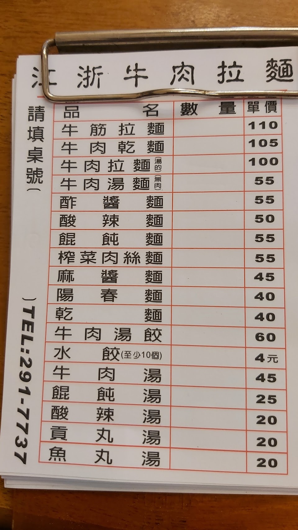 因為不是很餓,所以簡單點了一碗$50的牛肉湯跟$50的麻醬麵,牛肉湯味道偏淡只有兩塊牛肉,麻醬麵的醬汁個人覺得也不夠味,用餐環境還算乾淨寬敞,價格上還可以接受,但份量有點不足吃飽。 餐點類型 晚餐 平均每人消費金額 $1-200 餐點:3 服務:3 氣氛:3