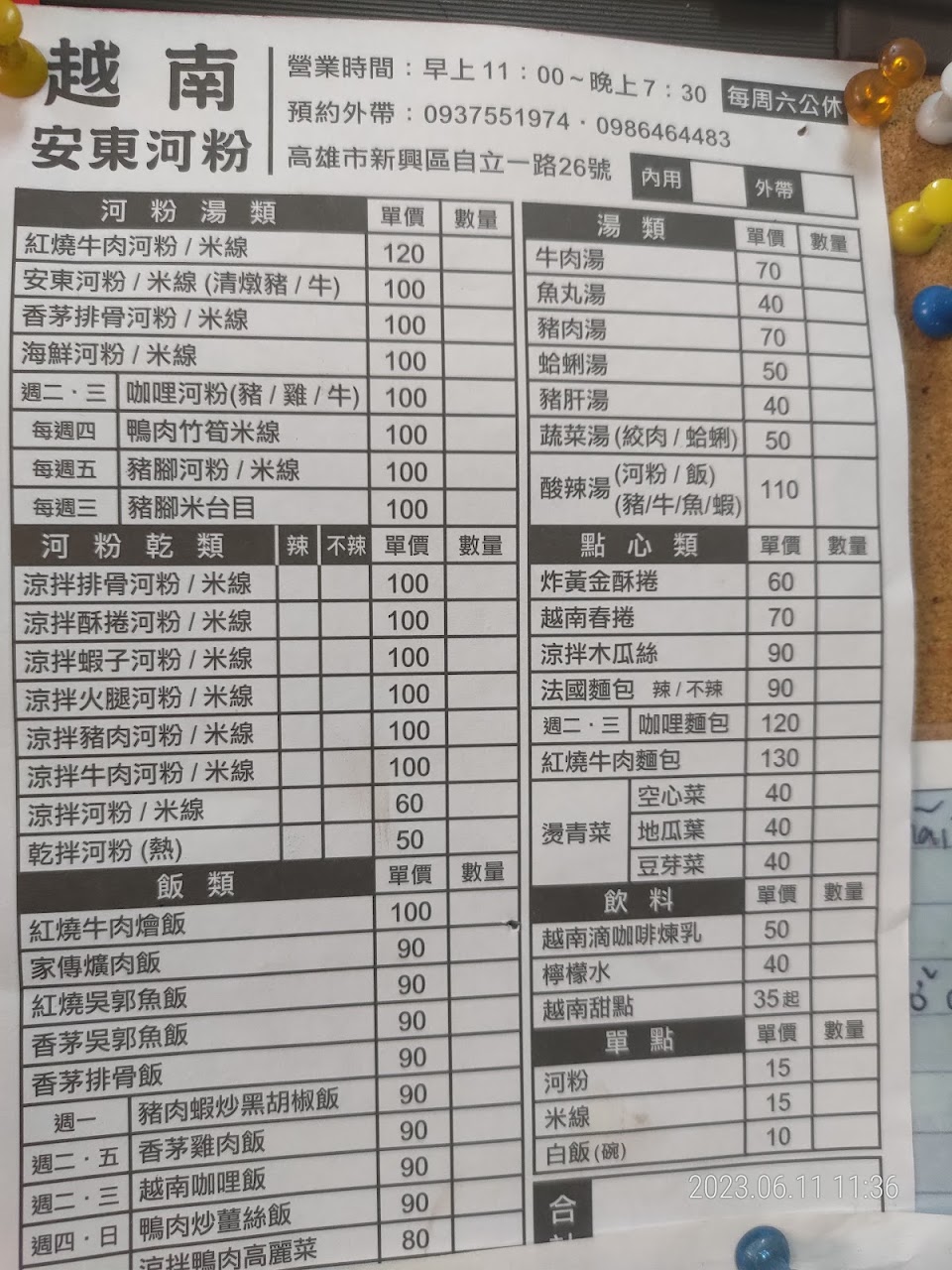 週六公休,好吃價格也不貴,超級推薦豬肉河粉/米線,湯底很好喝,配料有豆芽菜、豬肉片及豬肝,如果不吃豬肝可以跟老闆說不要內臟,店家會把豬肝的部分也換成豬肉片。