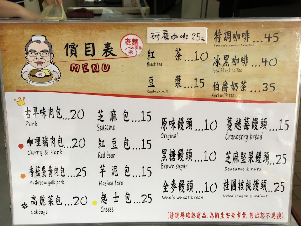 古早味肉包好吃,蔓越莓饅頭也很讚面皮軟嫩有彈性,也有賣黑咖啡。價格也很便宜,還買五送一。