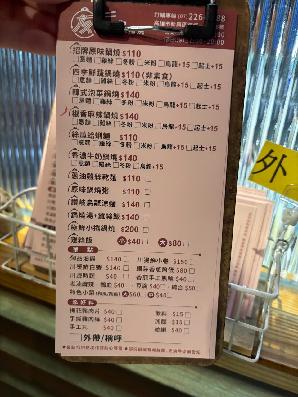 文青鍋燒店,鍋燒味道偏淡味,食材有用心! 服務 外帶 餐點類型 午餐