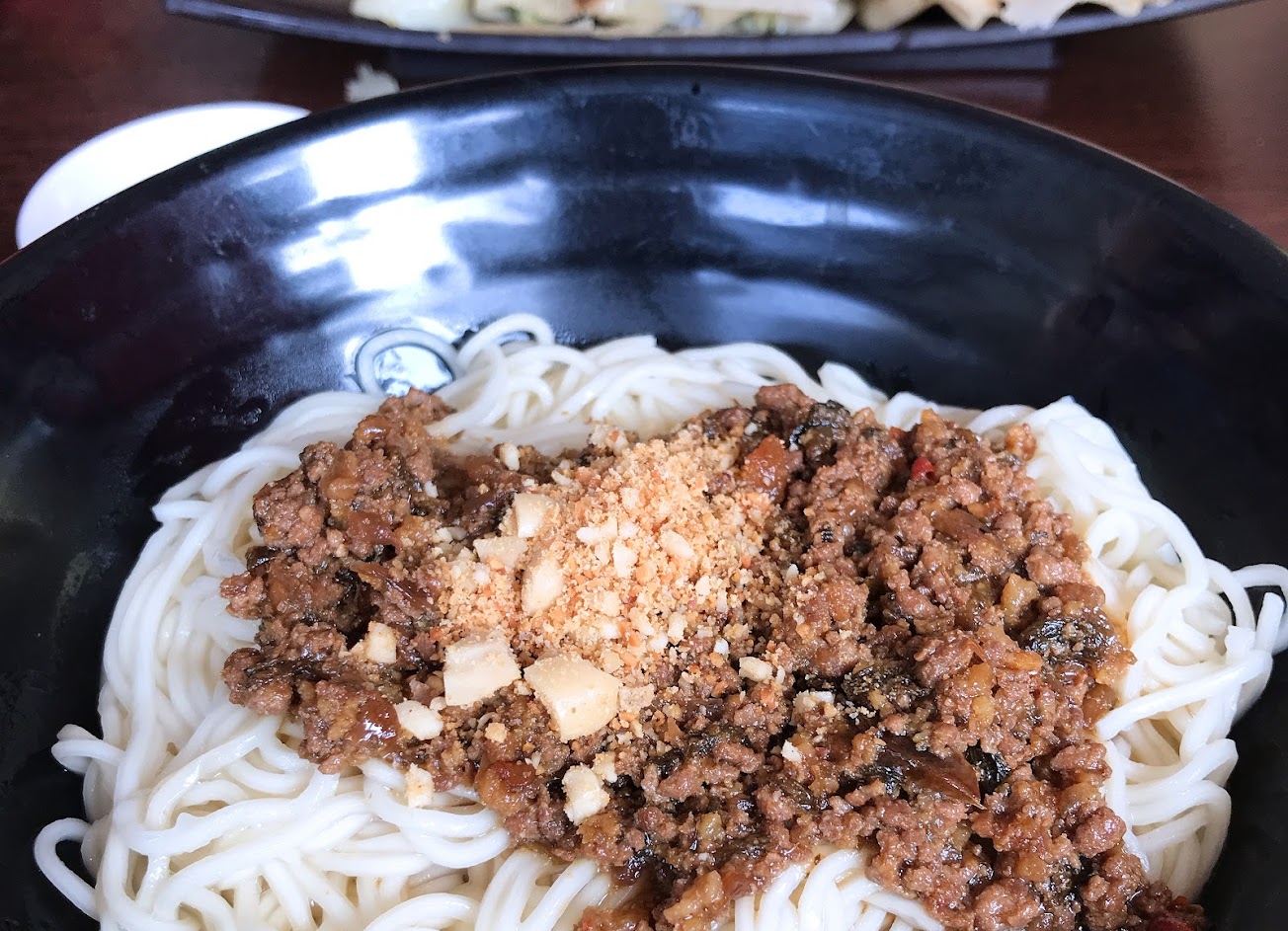 麵的部分,份量很足,肉醬不油、瘦肉為主,但口味上偏台式(只有不辣的選擇),拌完單吃會有點乾。