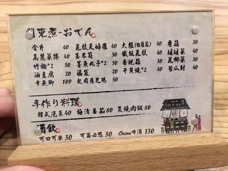 有拉麵和關東煮,拉麵算是便宜好吃,解個餓剛剛好。 店裡面環境乾淨,還有空氣清淨機!