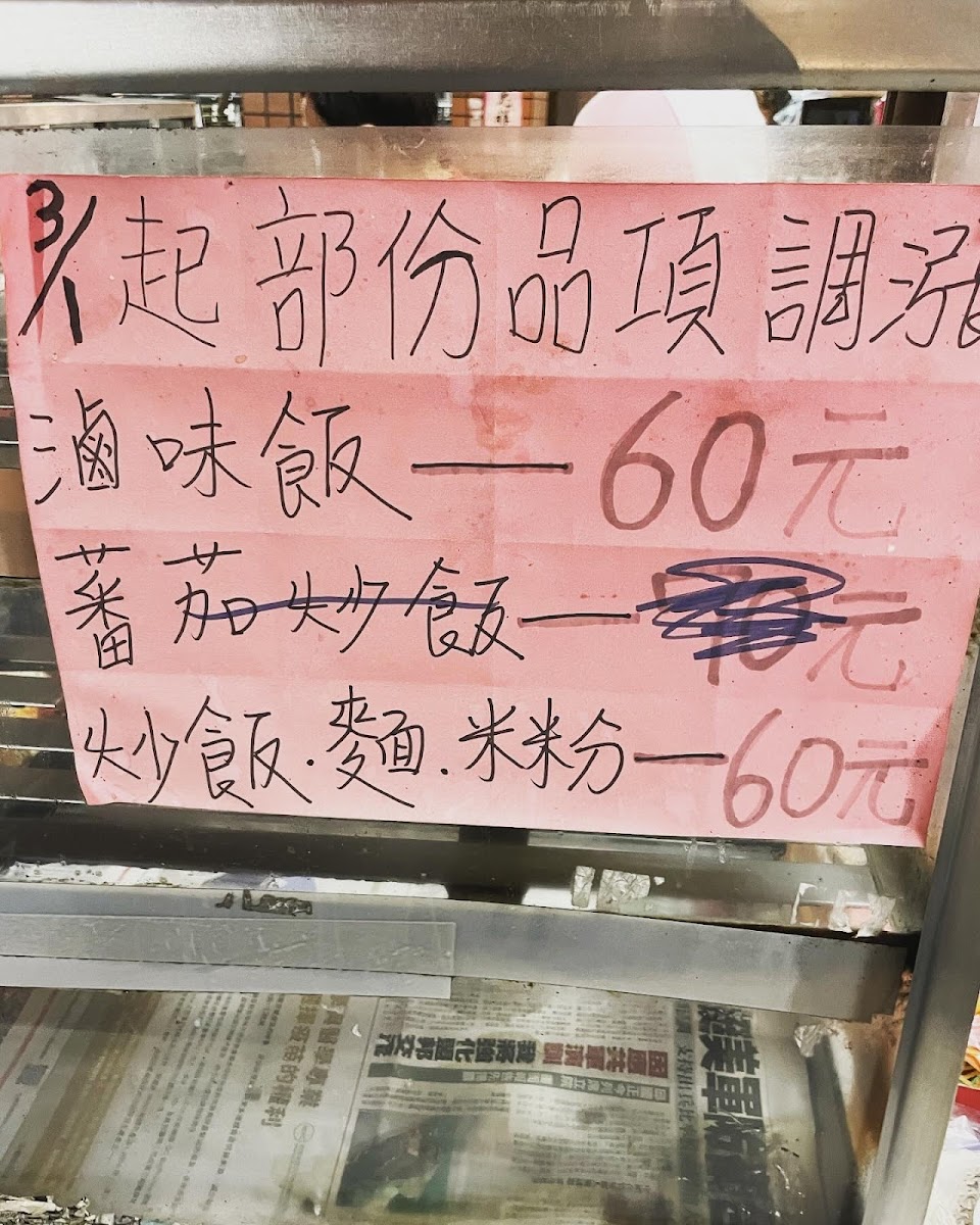 55元滷味飯50元“蝦仁炒飯便宜啦