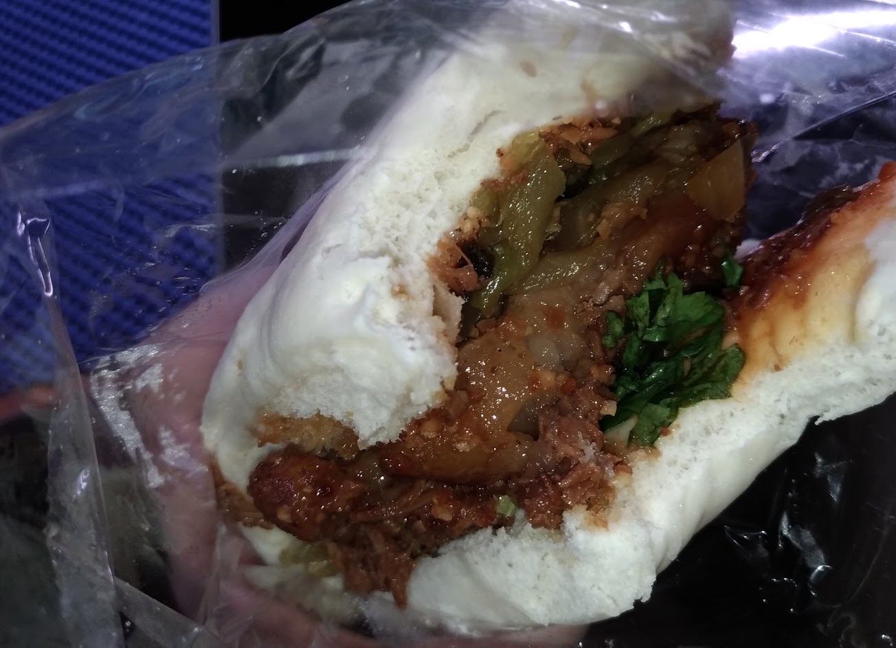 外帶綜合割包,肥瘦肉各半,肥肉趁熱時吃入口即化肥而不膩,應是喜歡肥肉的會很愛的口感,瘦肉肉比較碎,不會乾硬難咬。花生粉灑蠻多的,還有甜酸菜,整體吃起來偏甜>鹹,香菜提味解膩。割包麵皮中規中矩,沒有吃到硬硬的部份。
