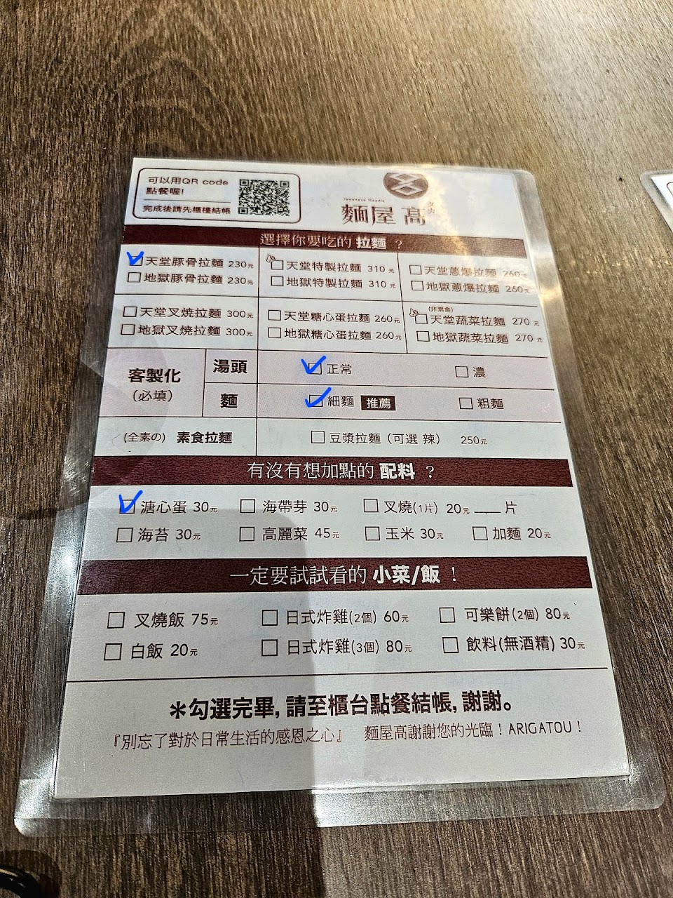 2024最新在地推薦餐廳的菜單_麵屋高的菜單、圖片
