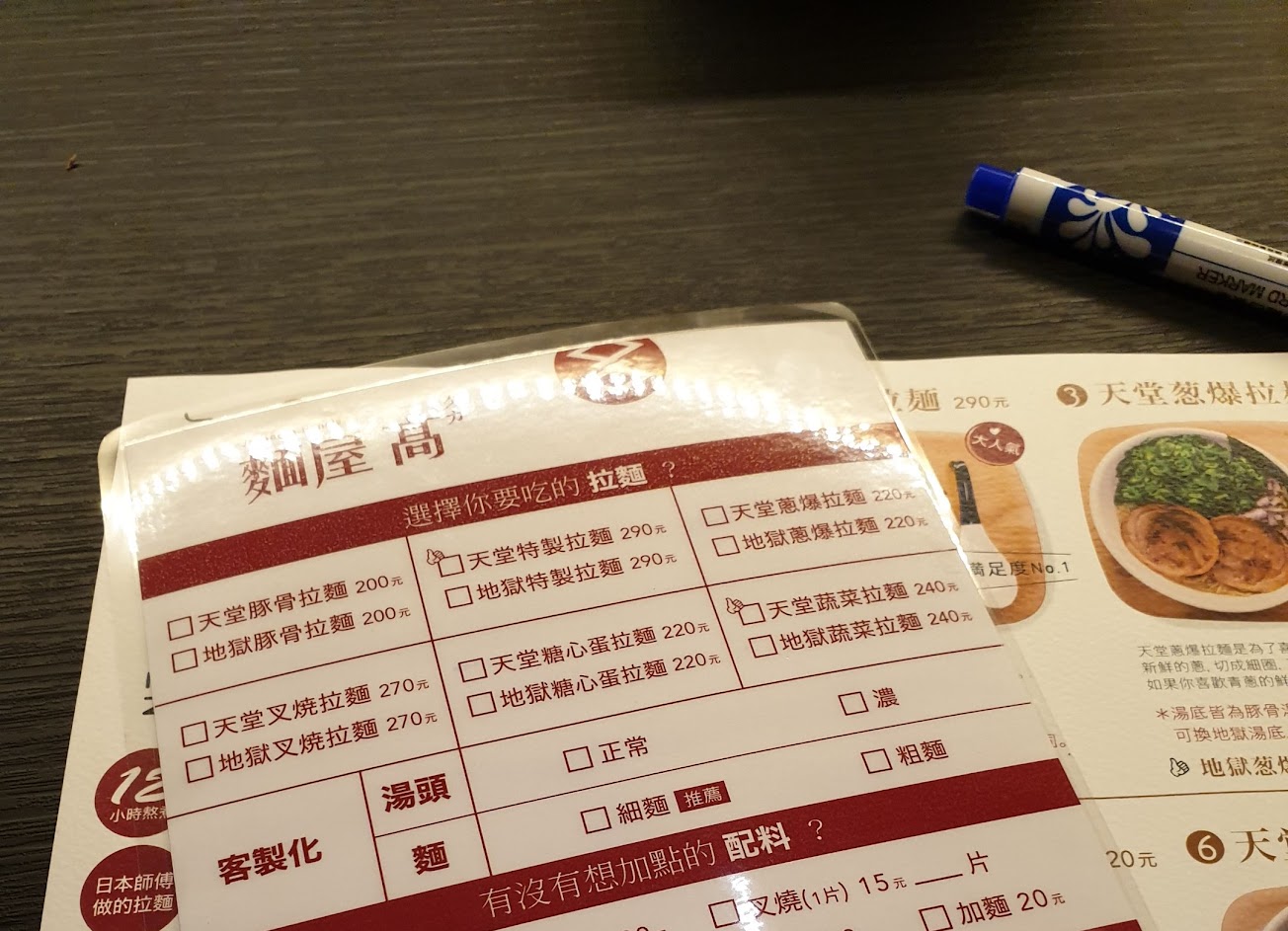 湯頭可以選,選了一般(另外一種是濃),(這次選了天堂 下一次要吃吃地獄)