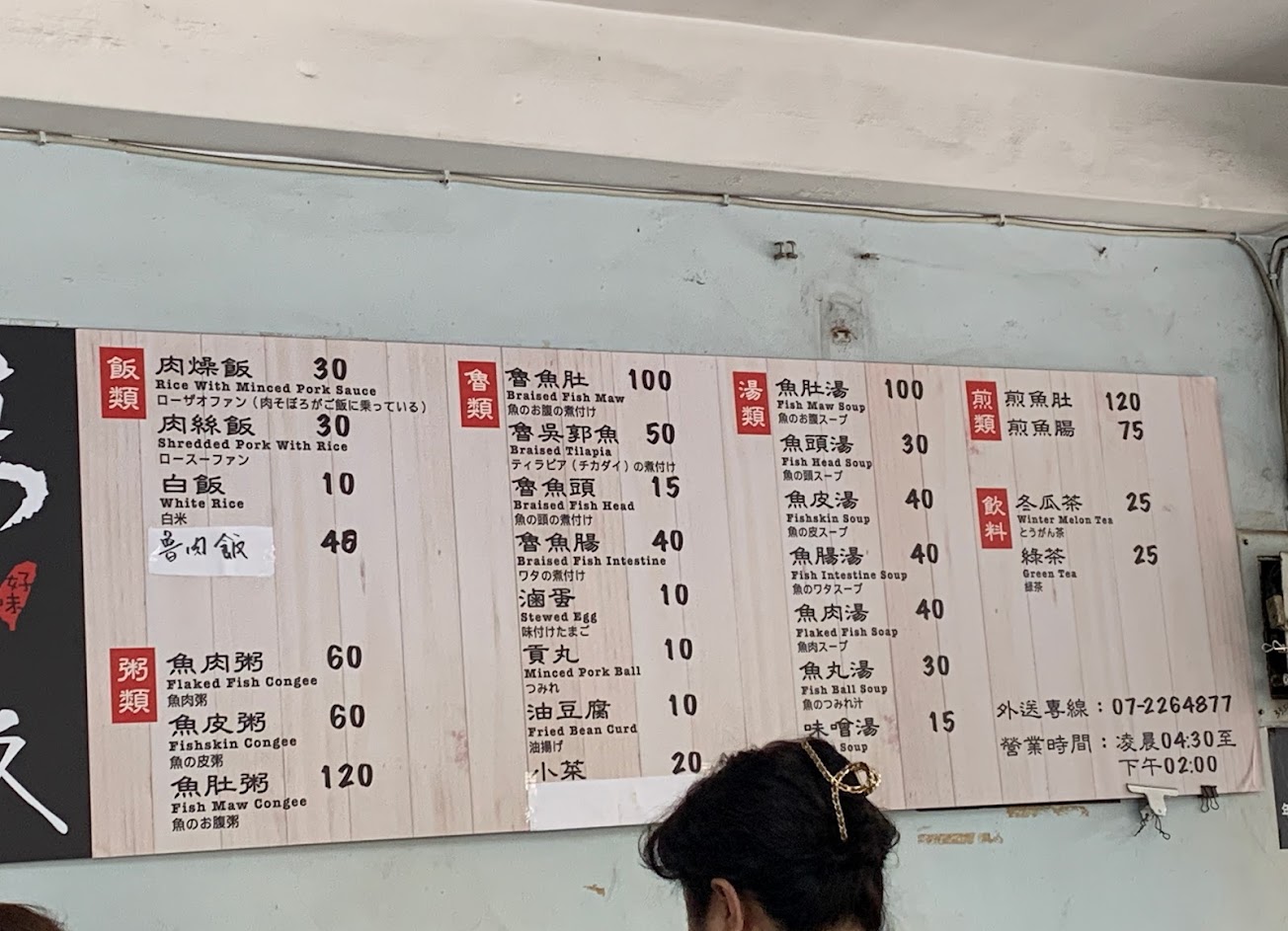 50年的高雄肉燥飯老店,滷魚肚,滷豆腐,配魚丸湯,南部人最愛。初次到訪的食客要注意一點,內用,外帶是分開排隊的,不好停車,但是巷子進去有收費停車場。 服務 內用 餐點類型 早午餐 平均每人消費金額 $1-200 餐點:4 服務:4 氣氛:4 建議的餐點 肉燥飯 魚皮湯 滷魚肚 魯魚肚 貢丸滷蛋 小肉燥飯 魚肉湯 滷豆腐 滷蛋