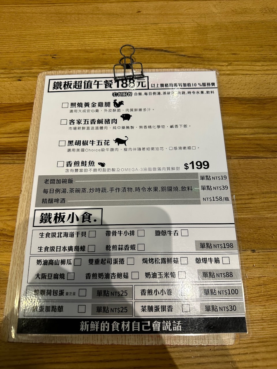 真的有家的味道,有別以前對鐵板燒的印象,服務很好!餐點很合味口! 餐點:5 服務:5 氣氛:5