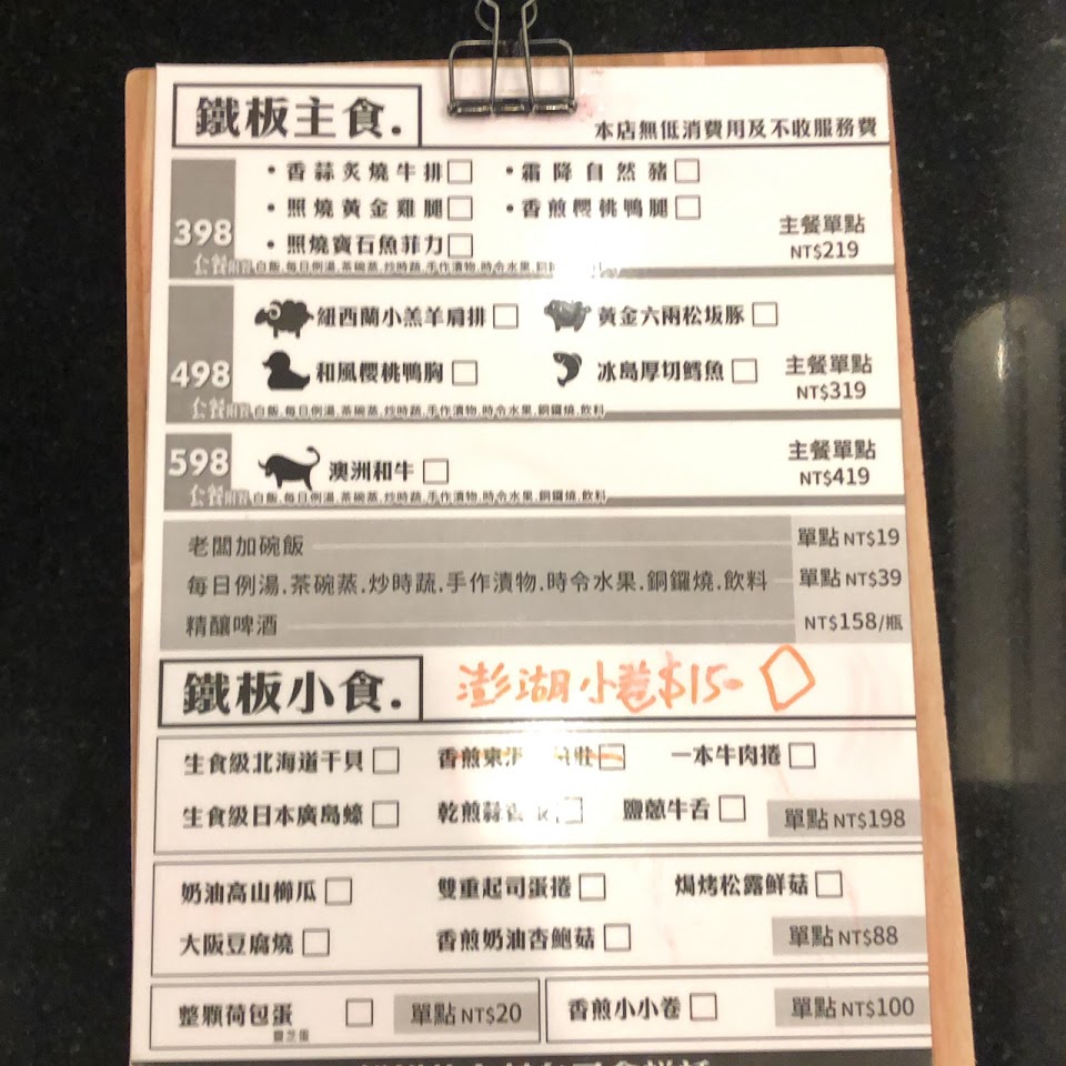 回家吃飯可以有鐵板燒是幸福的? 這間其實早在Ig 就有看到過,東西很豐富,品項很多印象蠻深刻的? 前幾天終於能夠來到這裡用餐!!! 我覺得是中低價位的鐵板燒來說cp 值蠻高的一間店? 套餐有非常豐富的配菜,讓通常只有一首主餐的鐵板燒變得豐富和多樣化? 喜歡!!! 說到主餐,這次點了398套餐的牛排和鴨腿,都非常滿意?入口不會柴,煎的很均勻?? 看得出來配餐的組合是經過細心思考而推出的,因為一般鐵板燒都是有個主餐再隨意炒個高麗菜和芽菜,再加暢飲的飲料或湯這樣? 我不是追求吃到飽吃爽的那種人,反而這樣子的套餐安排更心得我心,我男生這樣吃下去很飽?? 再來是鐵板小食,點了個牛根88蠻花算的,炒出來的味道也不錯,口感偏軟爛??♂️