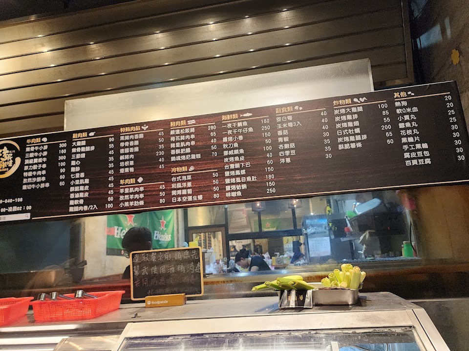 和朋友即興隨意選擇了附近的串燒店,意外發現一間口袋名單@@也真的很晚了~約凌晨快一點,所以只有我們一桌客人點了,營業時間也真的比較晚一點,店面寬敞整體感覺明亮整齊,菜色擺放不錯感覺也乾淨,選擇性性多,裡面的裝潢簡單乾淨整齊不會擁擠~座位也是蠻多的~