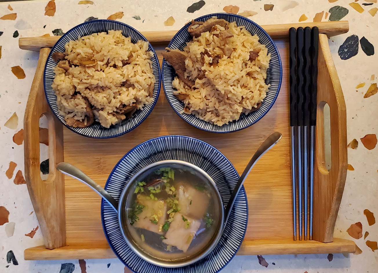?️環境:內用環境很舒服~ ?️餐點:鴨肉油飯,很好吃,飯粒粒分明的,超級讚,就是酒味有點重了?芋頭排骨湯,超級好喝的!!喝了排骨湯後,會覺得蒸蛋湯有點清淡,但是味道也很不錯?