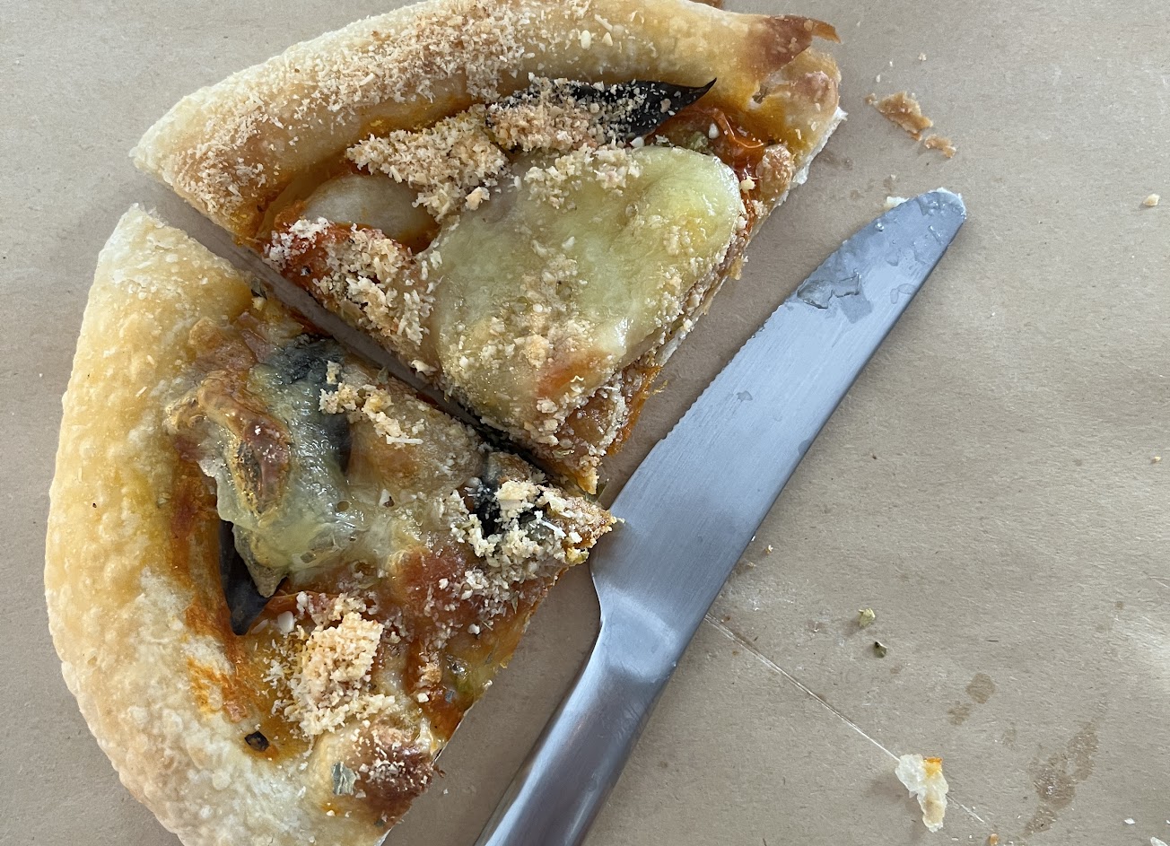 一進門就被那個大門嚇到沒有緩衝,直接蹦的關上門,不只我一個這樣,後面的人也是蹦的關門,蹦那麼大聲站在櫃檯也沒人,然後自己找位子等朋友,過了很久店員才發現有人進來,裡面的木地板凹凸不平,跟朋友走路走到快摔倒,甜點不錯但披薩超小又超貴,只能說甜點外帶回家就好了,想當網美的人不適合來這邊