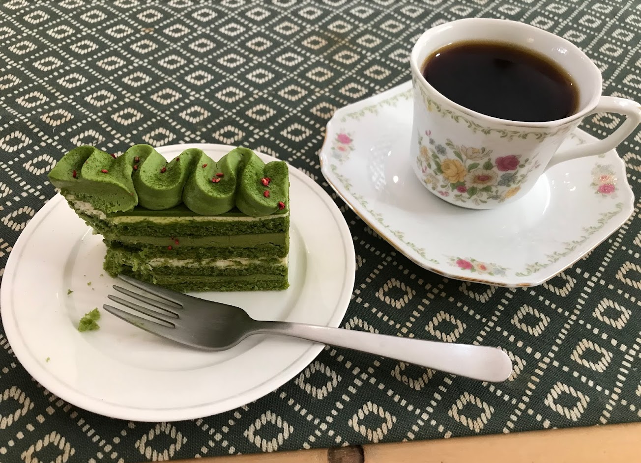 抹茶蛋糕不會太甜,水洗咖啡也不錯,適合不想吃太甜的人。