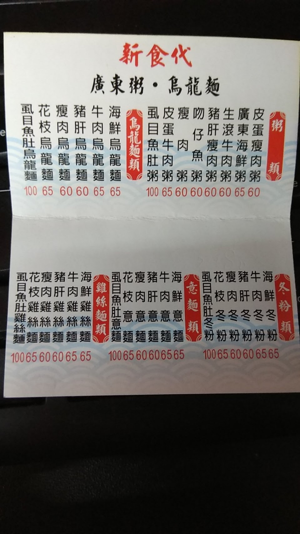 2024最新在地推薦餐廳的菜單_新食代廣東粥烏龍麵的菜單、圖片
