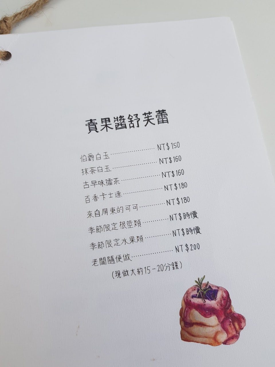 被IG抹茶舒芙蕾吸引而探訪,店門裝飾文青可愛,有賣一些可愛的明信片和吊飾,櫃台會給菜單和介紹,因為沒有收服務費,所以需要自己取餐和自助回收餐盤,主要座位區在二樓,二樓有分內用區和戶外區,戶外區有高教椅區域和網美吊椅可以拍照,佈置的很漂亮,餐點做好會廣播號碼通知取餐,櫃台有隻可愛的店貓慵懶的趴在那裡,這次點了抹茶舒芙蕾和草莓舒芙蕾,外觀都很漂亮,但抹茶拿到的時候已經冷掉了,草莓的是熱的但是醬是冷的,搭在一起總覺得沒這麼好吃,整體來說就當體驗氣氛。