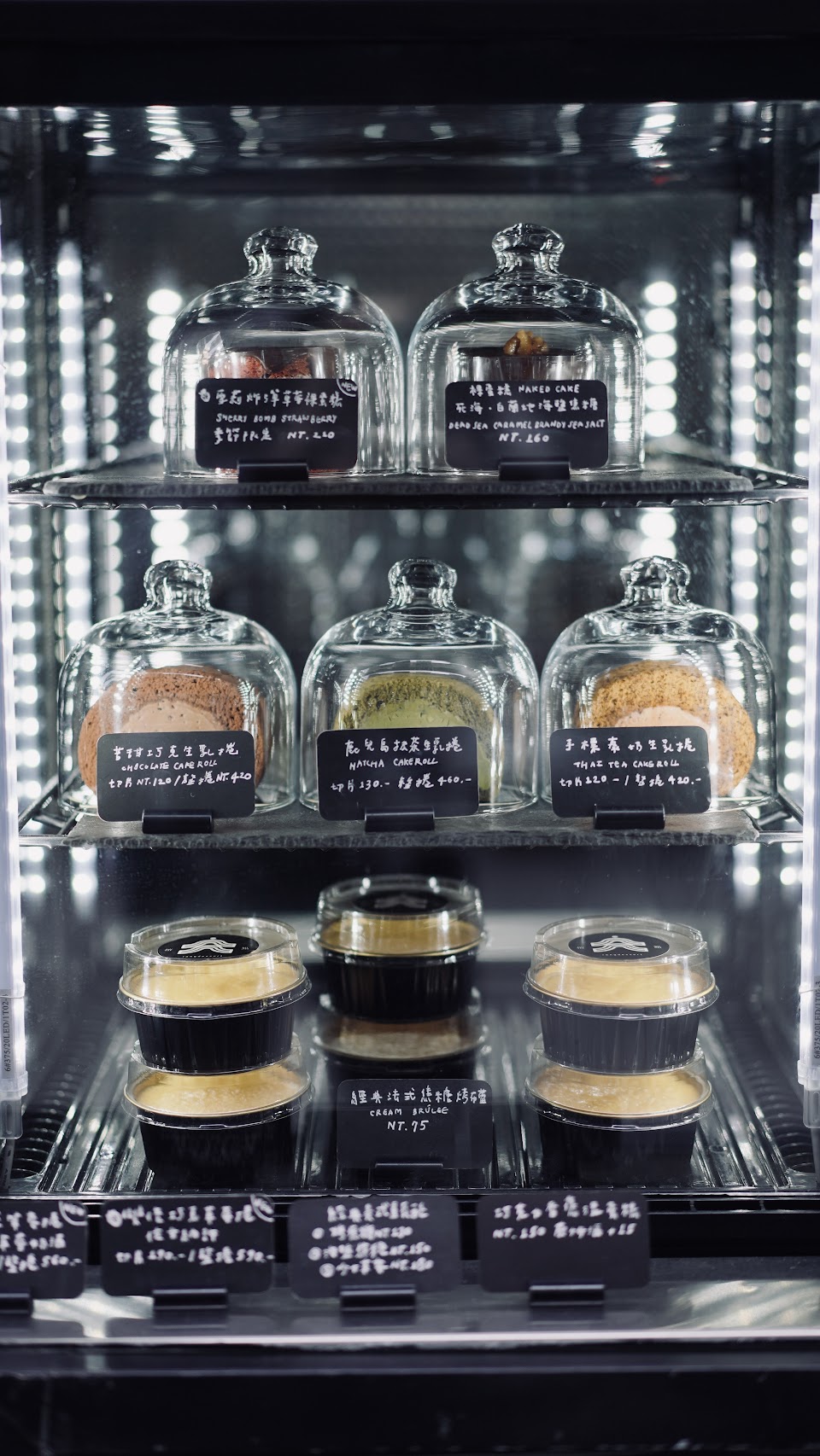 不愛吃太甜的甜點,巧克力生乳卷滿推薦,招牌烤布蕾也非常推薦,小小攤位但很有網紅氣氛
