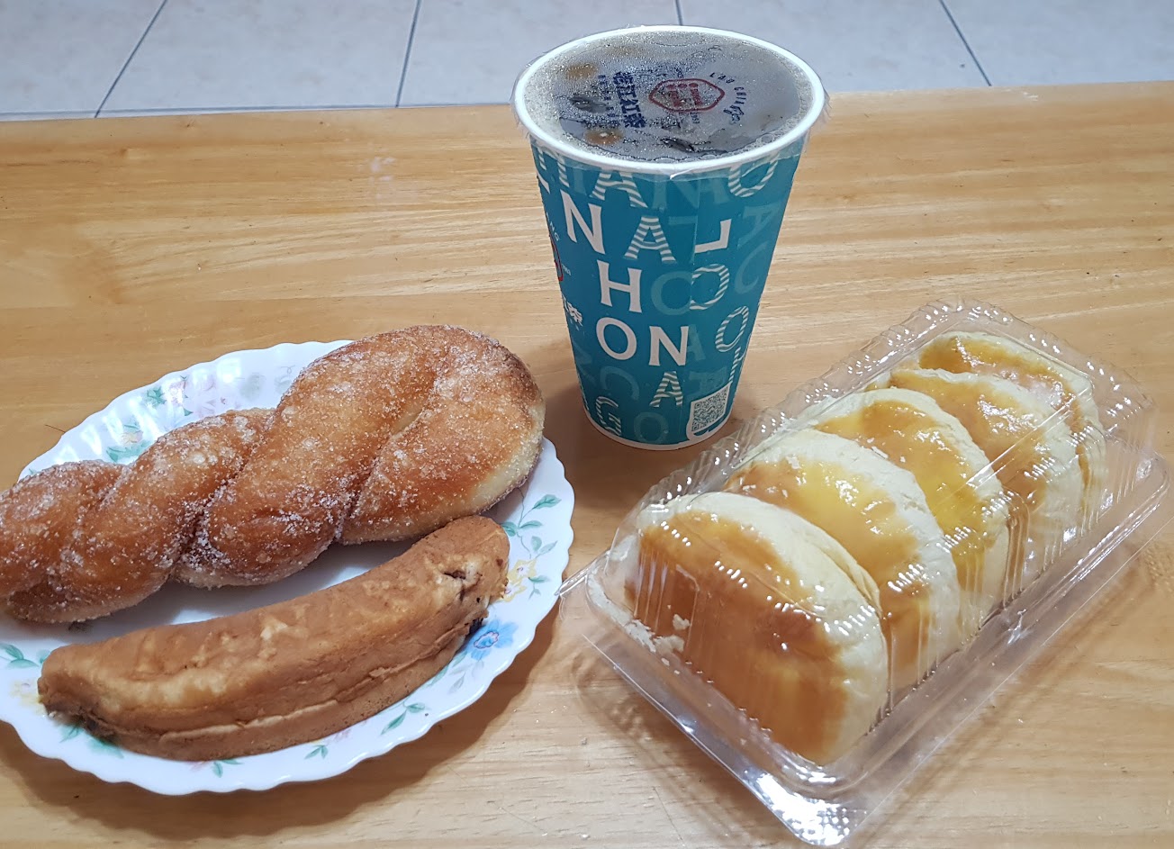 傳統好味道,忙碌的工作人員算是很有耐心,不厭其煩的告訴久違的我們應該配合的工作,紅茶牛奶依舊好喝,吐司類尚可,焦糖布丁不死甜,咖喱豬肉包冷掉了失去風味,建議應該幫客人回溫再出售。