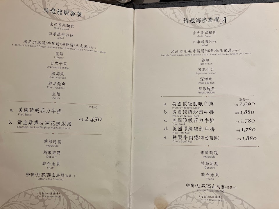 然後吃完我們又等了快四十分鐘, 等到又去問了服務生一次, 所以我們後面還有菜嗎? 服務生說還有海鮮, 湯品跟甜點….
