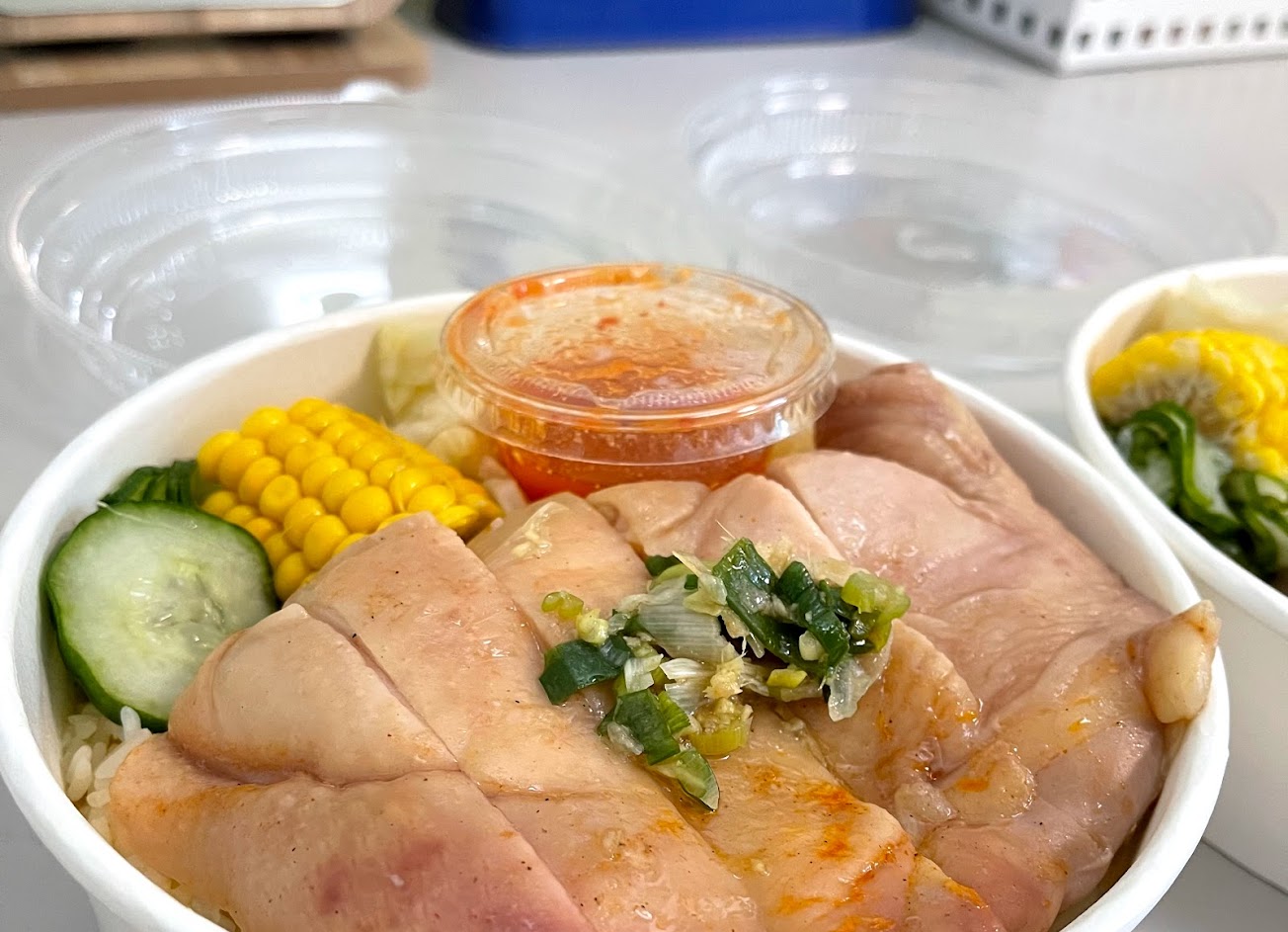 海南舒肥機兇:價格99 , 內容醃漬菜2樣, 舒肥雞胸肉, 覺得是在店裏吃便當的感覺, 口味沒有讓我想把便當吃完, 喜愛多醬的朋友,每種醬都是五元, 以同價格,旁邊的另一家海南雞飯更好吃, 配菜豐富,淋 醬辣椒都很棒。