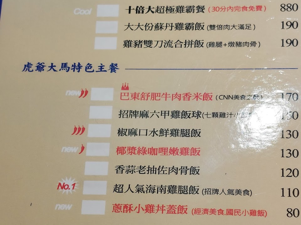 2024最新在地推薦餐廳的菜單_虎爺雞飯_新興民生店的菜單、圖片