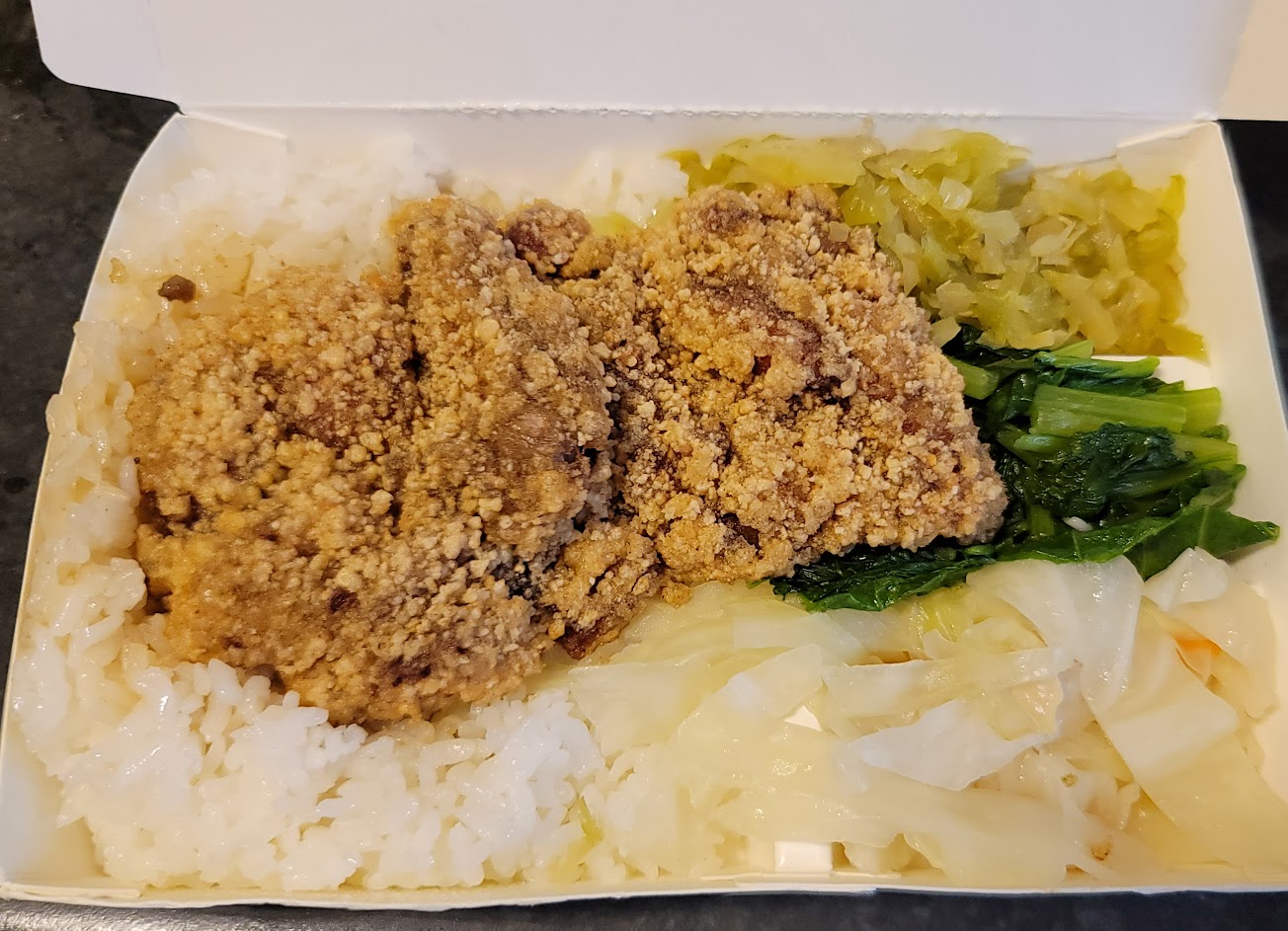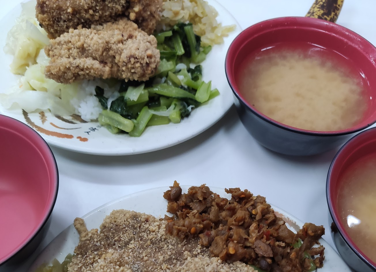 久久才吃一次,米飯口感乾巴巴,要配水或湯 因為防疫期間不可內用一律外帶 工作人員皆有配合戴,唯獨切菜洗菜的阿姨,時時拿下待會喝水待會吃東西,拿下後就到處走動,當有人提醒才‘往上拉一些’但還是沒有蓋住口鼻? 畢竟是備菜人員,又是在疫情警戒中,都已經執法開罰別害自己和店家 …