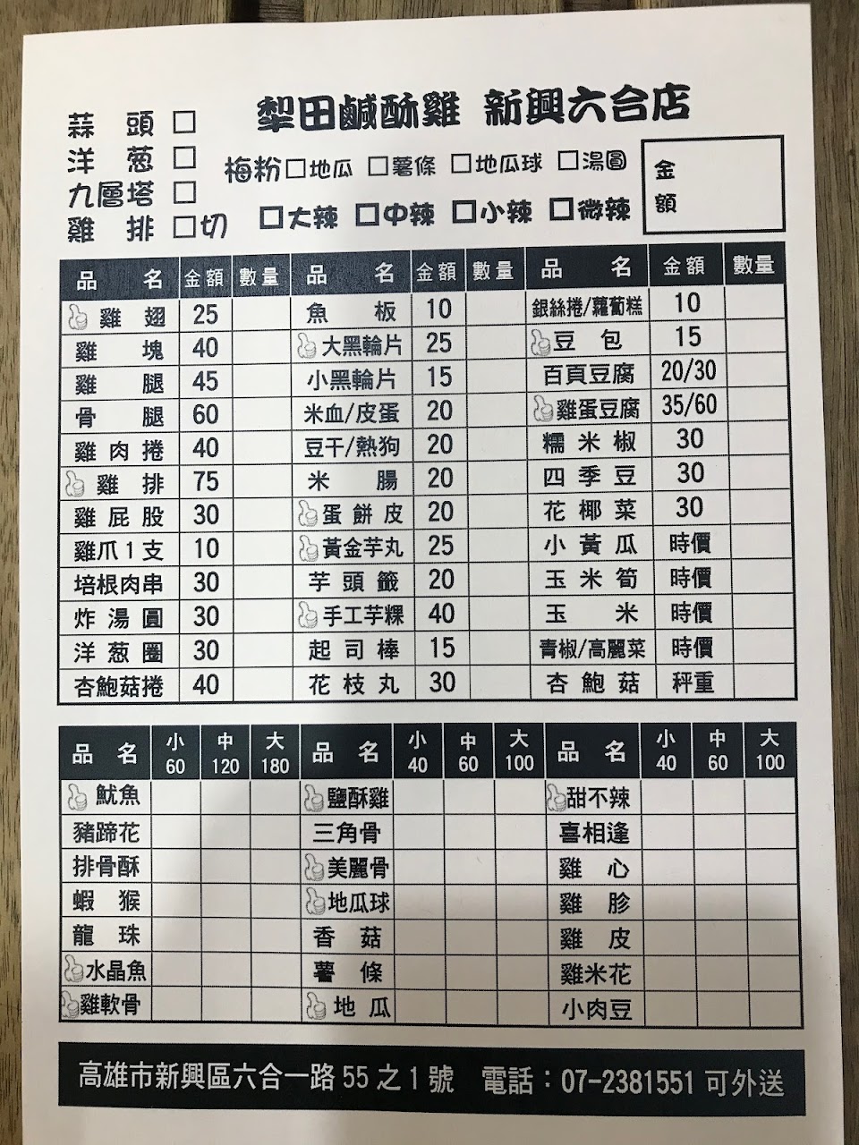 2024最新在地推薦餐廳的菜單_犁田鹹酥雞(新興六合店)的菜單、圖片