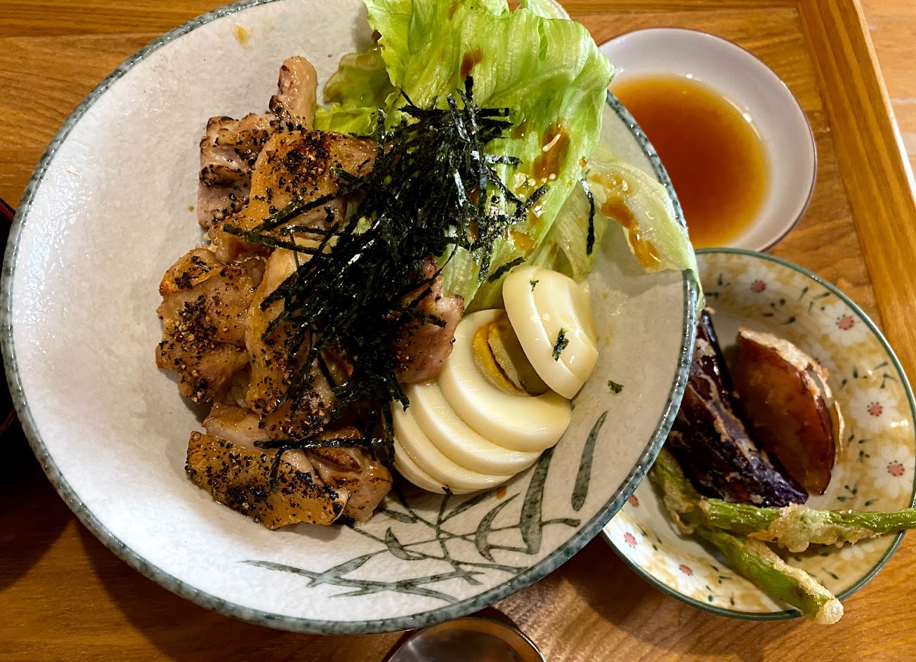 烤雞腿丼真的超好吃!套餐配的小菜也很棒!口味都很特別也很好吃!遠從台北下來偶爾搜尋到的美味真的是太幸運了!