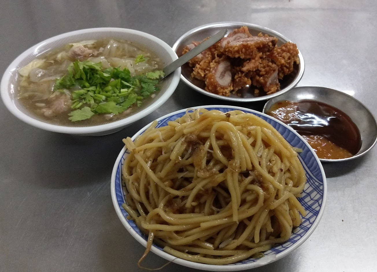 還可以囉~ 炒麵+紅糟肉+肉羹湯=$80