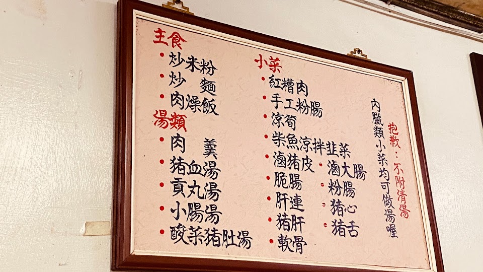 另外肉燥飯和炒麵不只平價而且還很適合配紅糟肉,吃完主菜後接著喝熱騰騰的豬腸湯,一頓下來滿足所有的口感!