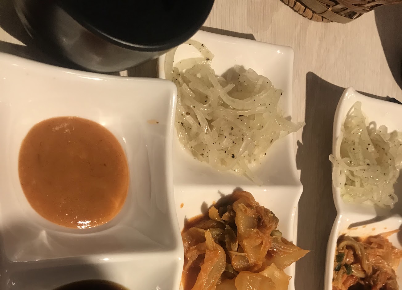 食材美味,非常好吃,小小店面,但是對於肉品要求一點都不馬虎,餐點都是套餐式的,份量剛剛好,吃完大概八分飽,而且米飯特別香Q好吃,軟硬適中,醬料則是用燒肉醬及味增醬,不會死鹹,一口泡菜一口燒肉的搭配超讚,或是加點黑胡椒直接吃,也是美味,非常推薦的一家燒肉店!而且價格超級佛的,這樣的價格再其他地方要吃到一樣肉品的燒肉店根本不可能了!烤網也是主動更換,不會把網子烤的黑黑的,柴魚湯更是美味,必喝,無限量暢喝,柴魚味道濃厚,不是一般用粉泡的高湯,也有檸檬水可以喝,不會覺得吃太多肉而膩膩的!飯後的甜點也是很特別,烤棉花糖夾餅乾,非常的特別,蹦出不一樣的新滋味,單點的肉品份量也是給的很充足,老闆非常客氣健談,還會教客人怎麼烤,怎麼吃可以吃的更美味,算是一家非常用心經營的一家店家,大推,食材,服務,美味,滿足一次到位,完全不輸市區燒肉店家,價格也是超級便宜的,而且可以慢慢的品嚐,沒有時間的限制